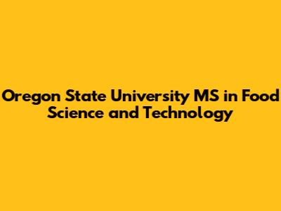 Oregon State University MS In Food Science And Technology