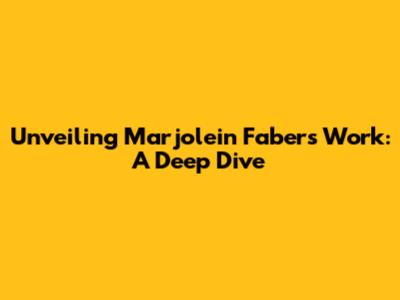 Unveiling Marjolein Faber's Work: A Deep Dive